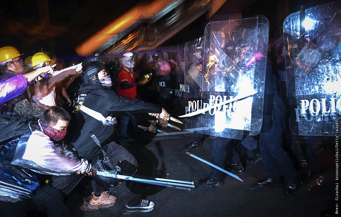 Протестующие атакуют полицию во время марша к дому премьер-министра Тайланда, обвиняемого оппозицией в коррупции