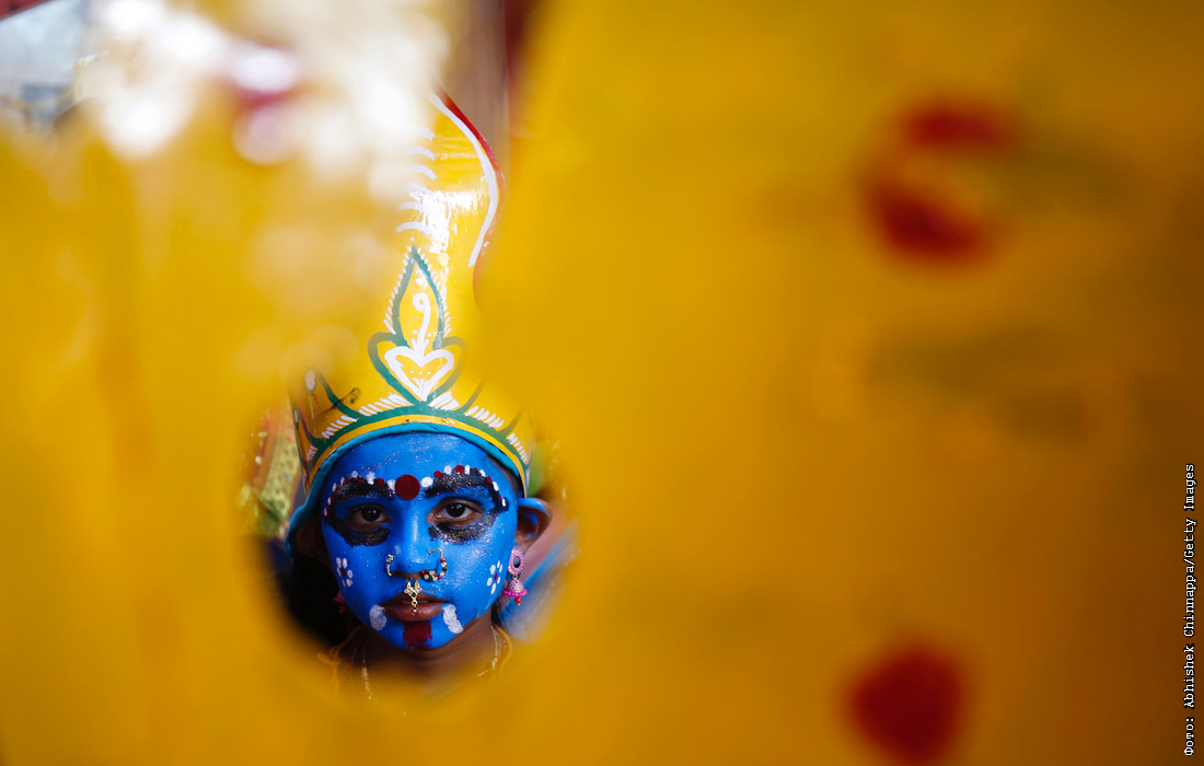 Участник индуистского праздника в честь бога Шивы в Индии