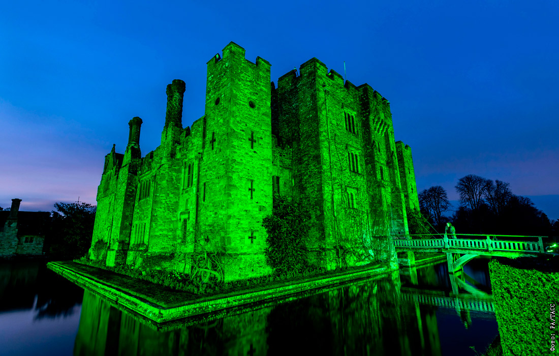Зеленая подсветка замка Хивер в английском графстве Кент