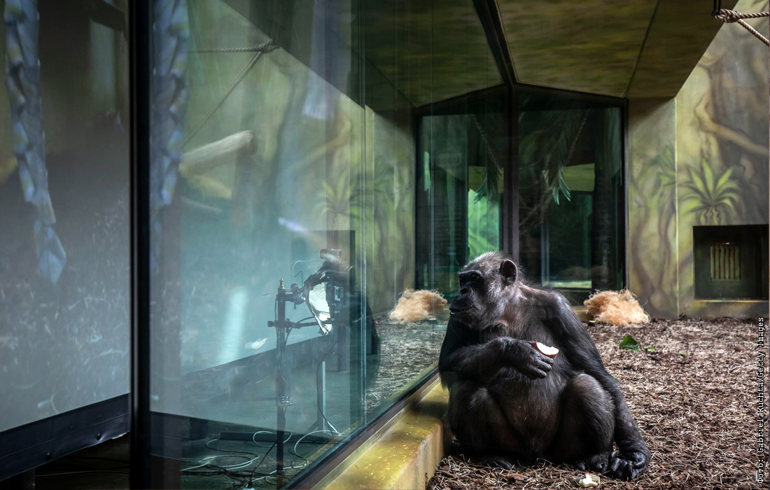 В вольере шимпанзе в зоопарке чешского города Двур-Кралове-над-Лабем организовали прямую трансляцию из зоопарка в Брно