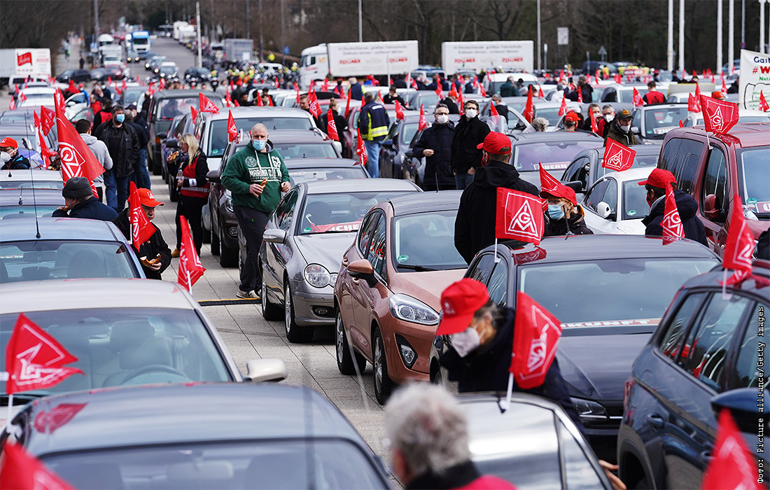 И снова Берлин: здесь работники металлургического сектора собрались на предупредительную забастовку. Причина - затягивание вопроса с повышением заработной платы.
