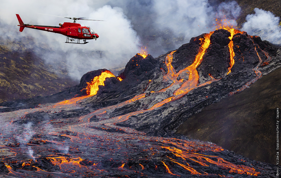 Извержение вулкана на Фаградалсфьялле в Исландии
