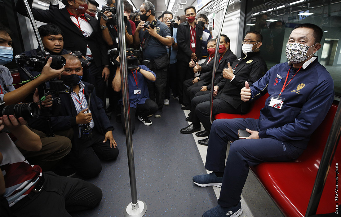 Тайский министр транспорта прокатился по новой ветке метро, которая должна открыться для пассажиров грядущей осенью
