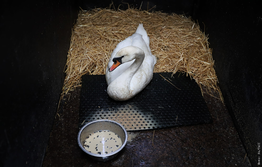 Лебедь в первой в Ирландии больнице для диких животных в Наване (ирландское название - Ан-Уавь)
