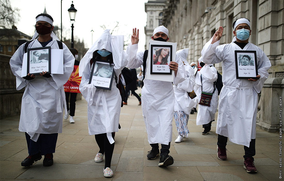 Мьянмские протесты докатились до Лондона: сочувствующие лишенным свободы оппозиционерам устроили акцию в их поддержку в центре столицы Великобритании