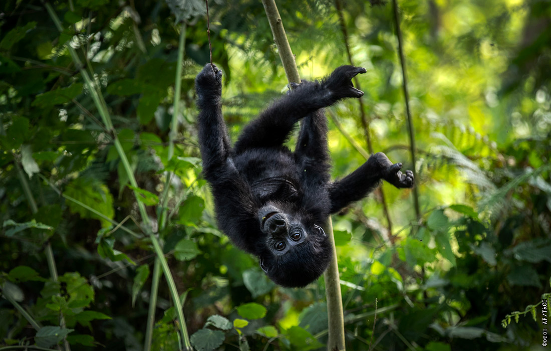 Детеныш горной гориллы в Национальном парке Бвинди на юго-западе Уганды
