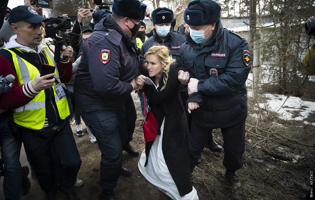Сотрудники полиции задерживают лечащего врача Алексея Навального Анастасию Васильеву у исправительной колонии общего режима №2, где отбывает наказание оппозиционер, объявивший голодовку