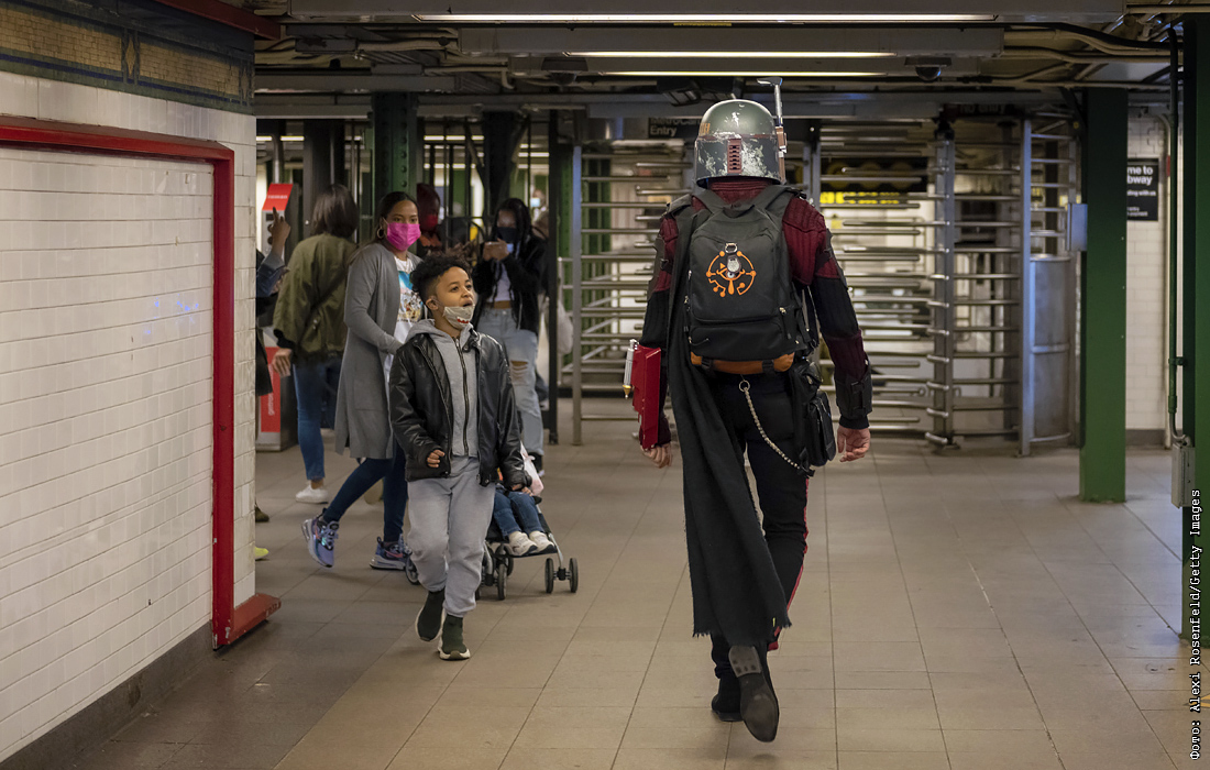 Пассажиры на станции метро Union Square в Нью-Йорке