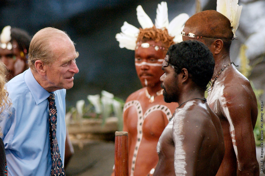 Герцог Эдинбургский беседует с аборигенами в Австралии. 2002 год.