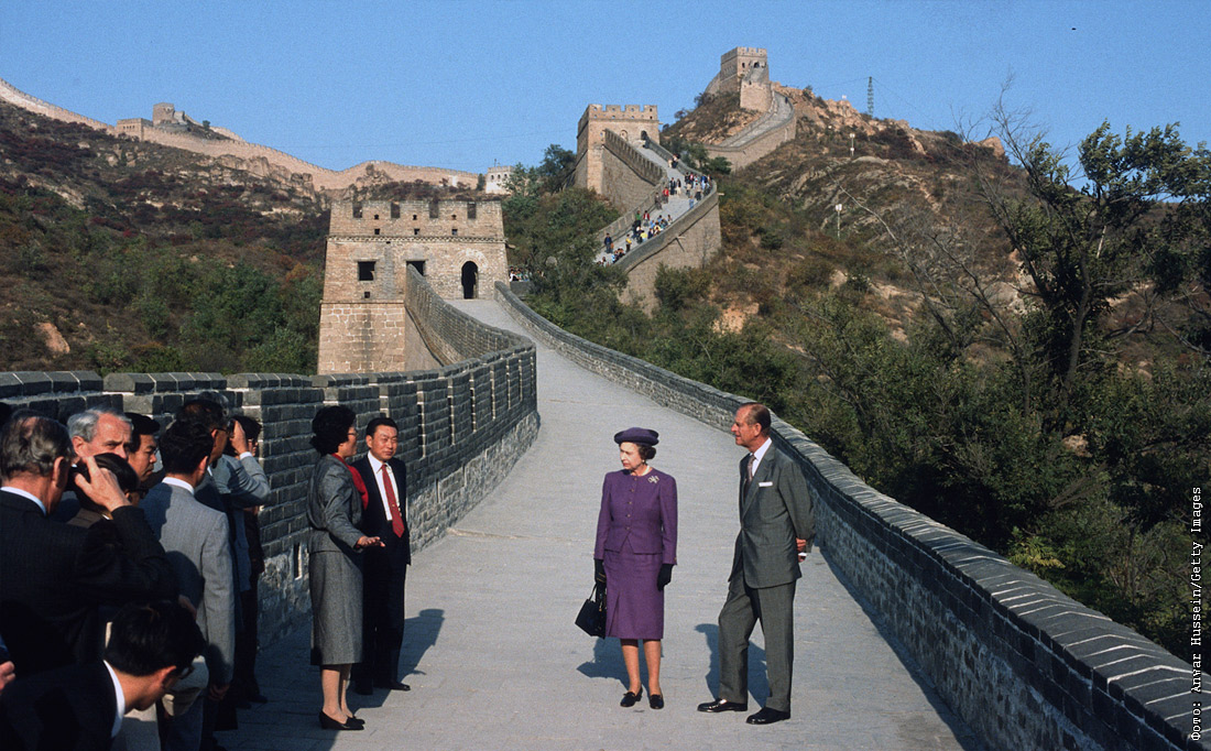 Елизавета II и ее супруг посещают Великую Китайскую стену. 1986 год.