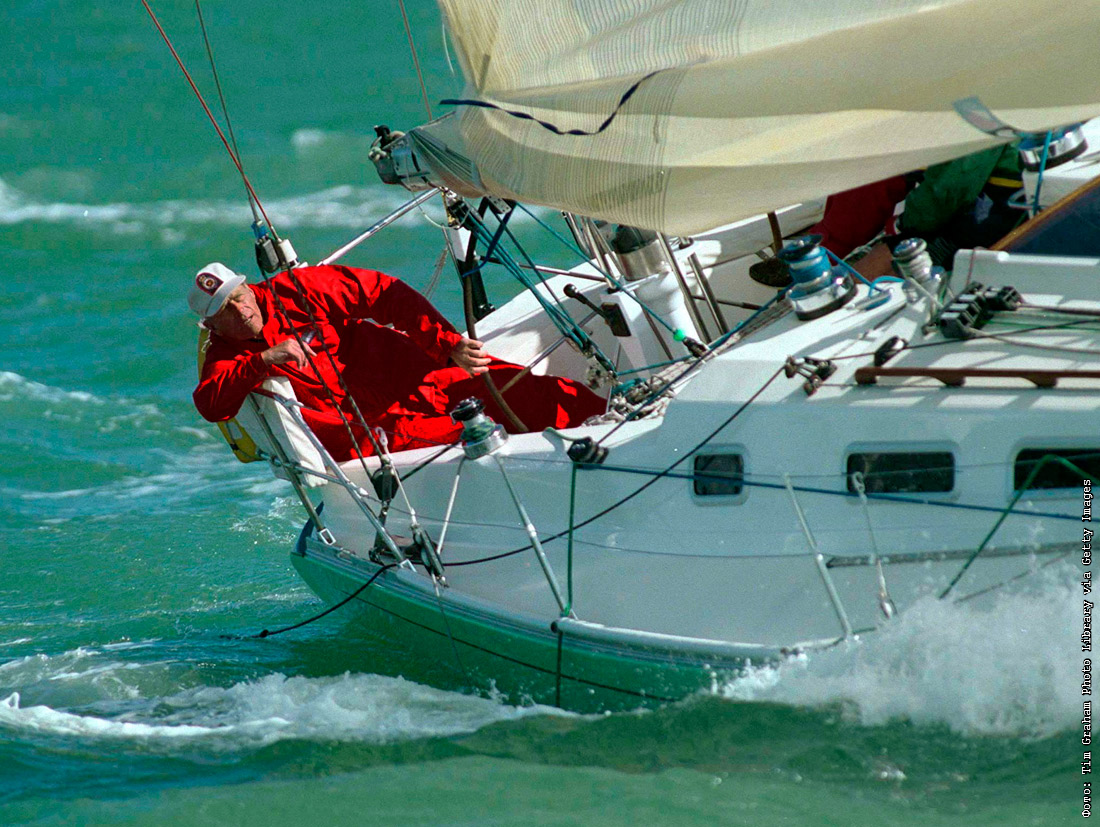 Cупруг королевы Великобритании на яхте на севере острова Уайт, Англия. 1996 год.