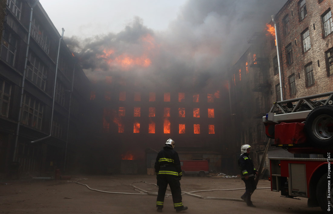 В Санкт-Петербурге горит бизнес-центр "Невская мануфактура", площадь пожара составляет 10 тысяч квадратных метров. Возгоранию присвоен максимальный - пятый - уровень сложности. При тушении пострадали двое пожарных, еще один погиб. Из горящей постройки эвакуировали 40 человек.