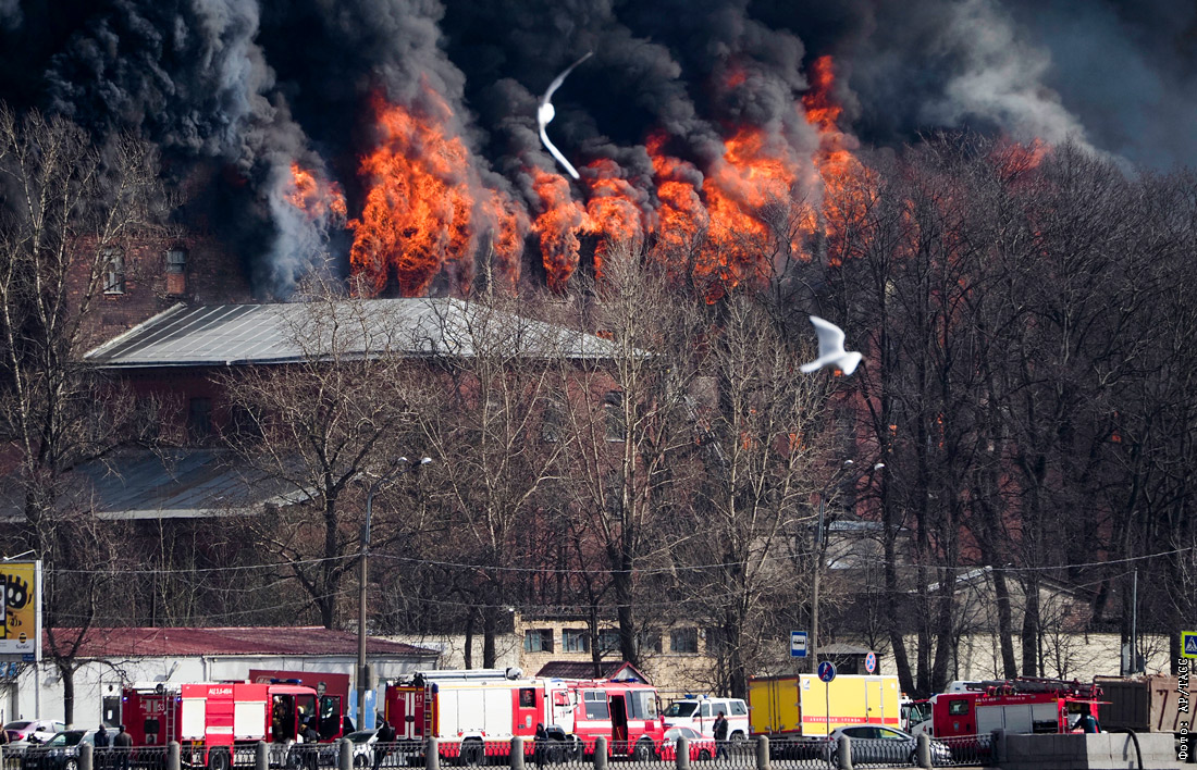 В Санкт-Петербурге горит бизнес-центр "Невская мануфактура", площадь пожара составляет 10 тысяч квадратных метров. Возгоранию присвоен максимальный - пятый - уровень сложности. При тушении пострадали двое пожарных, еще один погиб. Из горящей постройки эвакуировали 40 человек.