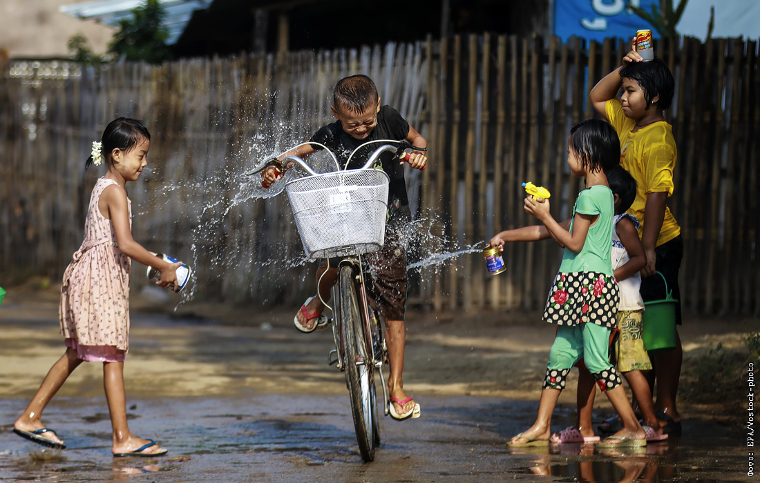 Водяной фестиваль во время празднования бирманского Нового года в Нейпьидо. Активисты движения против военного переворота в Мьянме призывают бойкотировать официальные праздники.