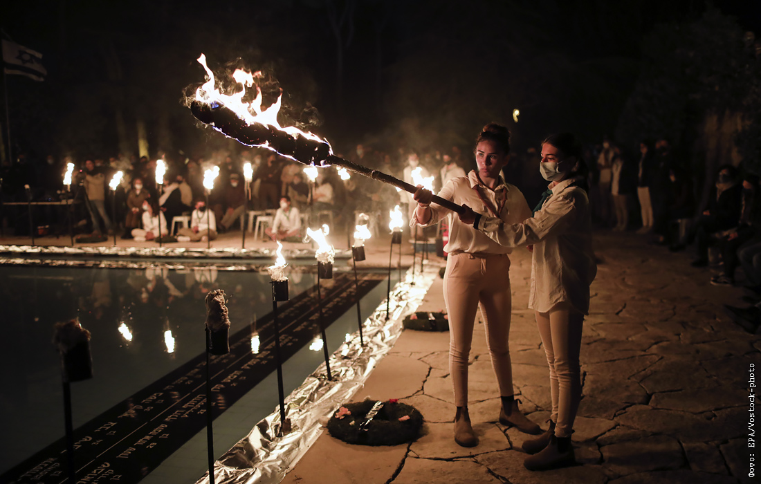 Поминальная церемония на военном кладбище на горе Герцль накануне Дня памяти в Иерусалиме. Израиль отмечает отмечают День памяти павших в войнах и терактах.