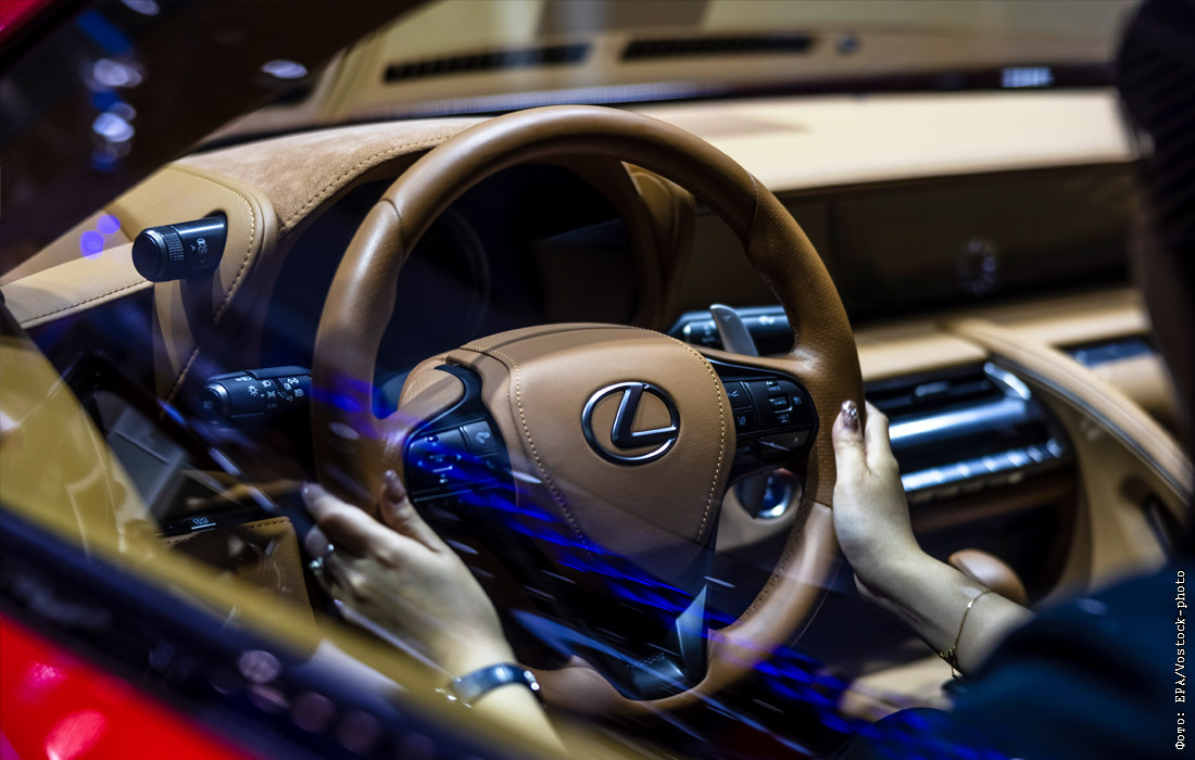 Посетительница выставки в салоне Lexus LC 500h