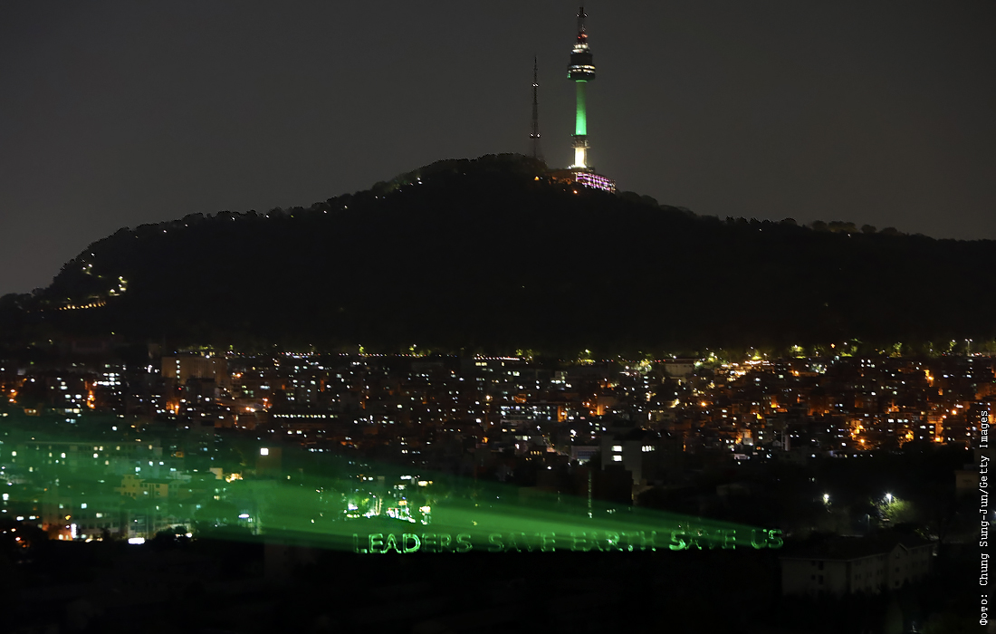 Активисты Гринпис в Сеуле выступили с обращением к мировым лидерам с требованием принять срочные меры, чтобы переломить ситуацию с усугублением климатических проблем
