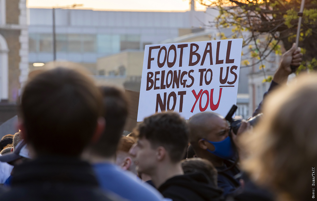 В Лондоне футбольные болельщики вышли на улицы, чтобы выразить свой гнев по поводу присоединения "Челси" к Суперлиге
