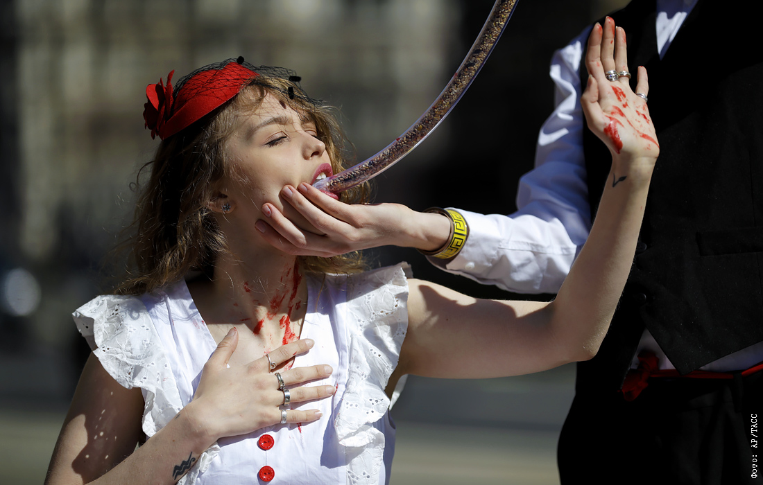 Активисты PETA во время демонстрации против импорта фуа-гра в Великобритании
