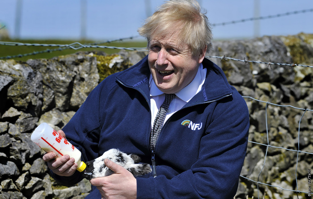 Премьер-министр Великобритании Борис Джонсон во время визита на ферму Мур в графстве Дербишир