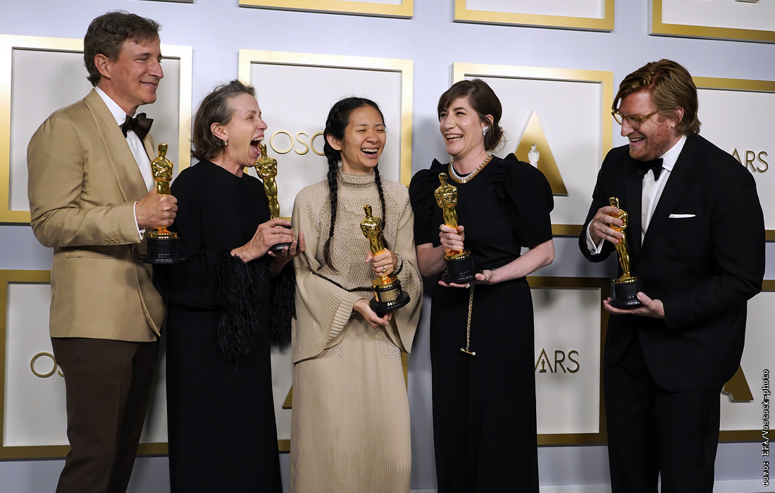 Команда фильма "Земля кочевников", который завоевал "Оскар" в номинации "Лучший фильм"