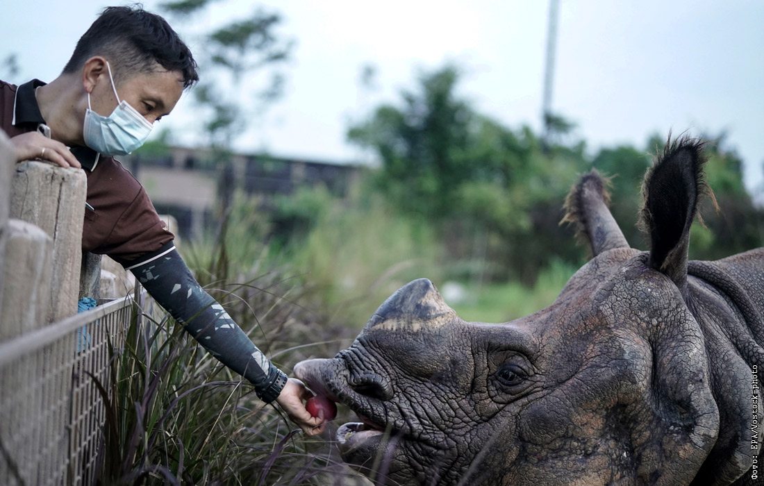 Пара индийских носорогов доставлена в зоопарк Сингапура из зоологического центра Аль-Бустан в ОАЭ