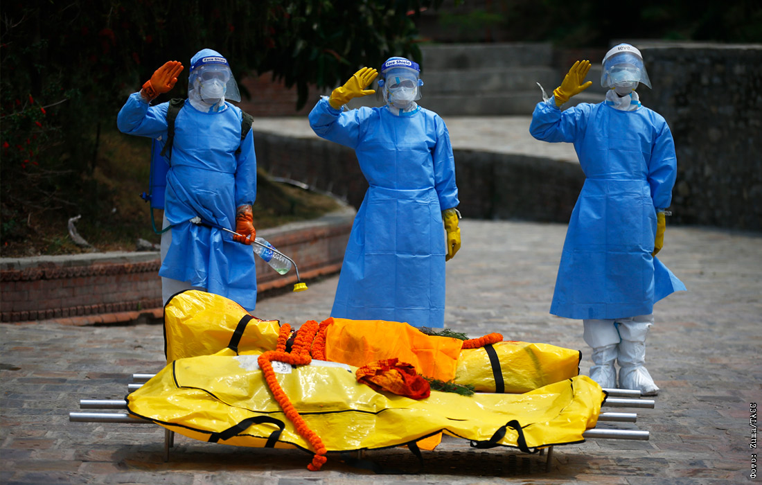 Кремация жертв коронавируса COVID-19 в Катманду