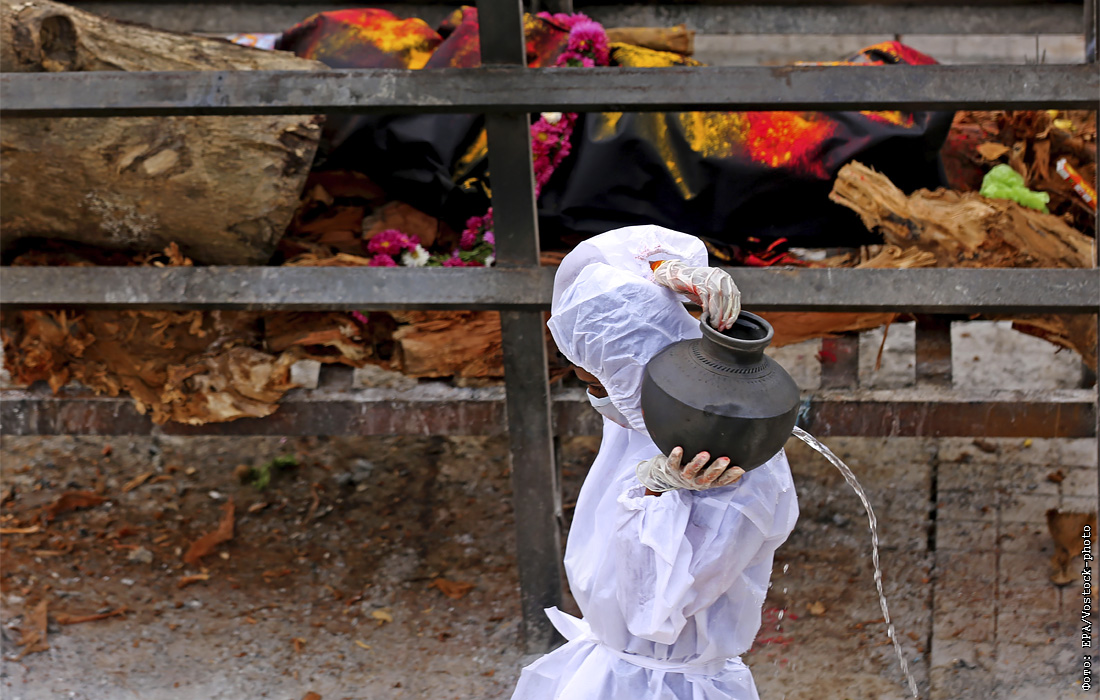 5 мая. Родственники совершают обряды во время похорон на месте массовой кремации на окраине Бангалора, Индия.
