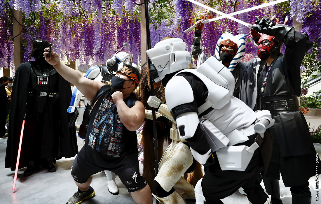 День "Звездных войн" ежегодно отмечается 4 мая фанатами со всего мира. Поклонники позируют фотографу во время празднования в здании Taipei 101 в Тайбэе, Тайвань.