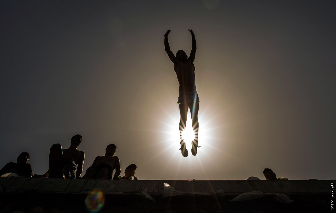 Юноша прыгает в Средиземное море в Сайде, Ливан