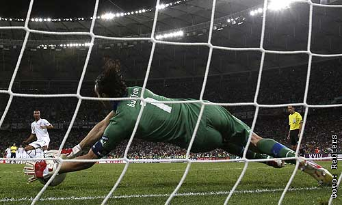 Сборная Италии стала последним полуфиналистом чемпионата Европы по футболу 2012 года, обыграв в воскресенье в четвертьфинале в Киеве команду Англии в серии послематчевых пенальти. В основное время матча команды не смогли забить голов. Дополнительное время также завершилось со счетом 0:0, а в серии пенальти итальянцы оказались сильнее, выиграв ее со счетом 4:2