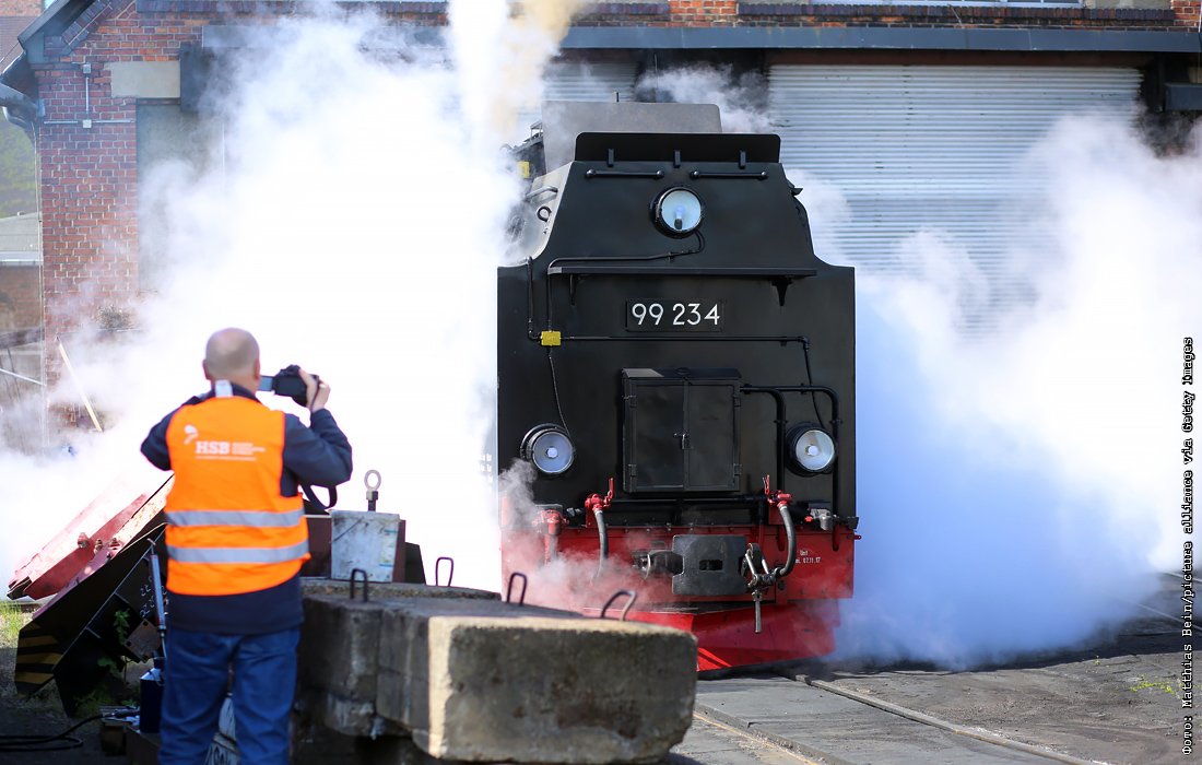 После семимесячного перерыва паровозы снова будут курсировать через горы немецкого Гарца. На фото: сотрудники "Harzer Schmalspurbahn HSB" нагревают паровоз перед мастерской.