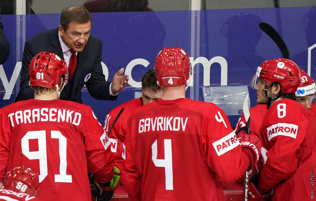 Главный тренер сборной России Валерий Брагин и игроки команды