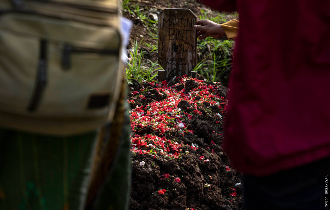В Индонезии от COVID-19 умерли 52 тысячи человек. На фото: похороны жертв коронавируса в Джакарте.