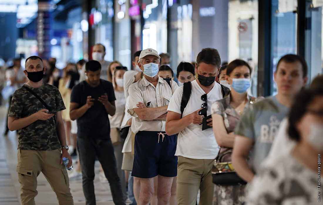 Очередь в пункте вакцинации в торговом центре Саларис в Москве