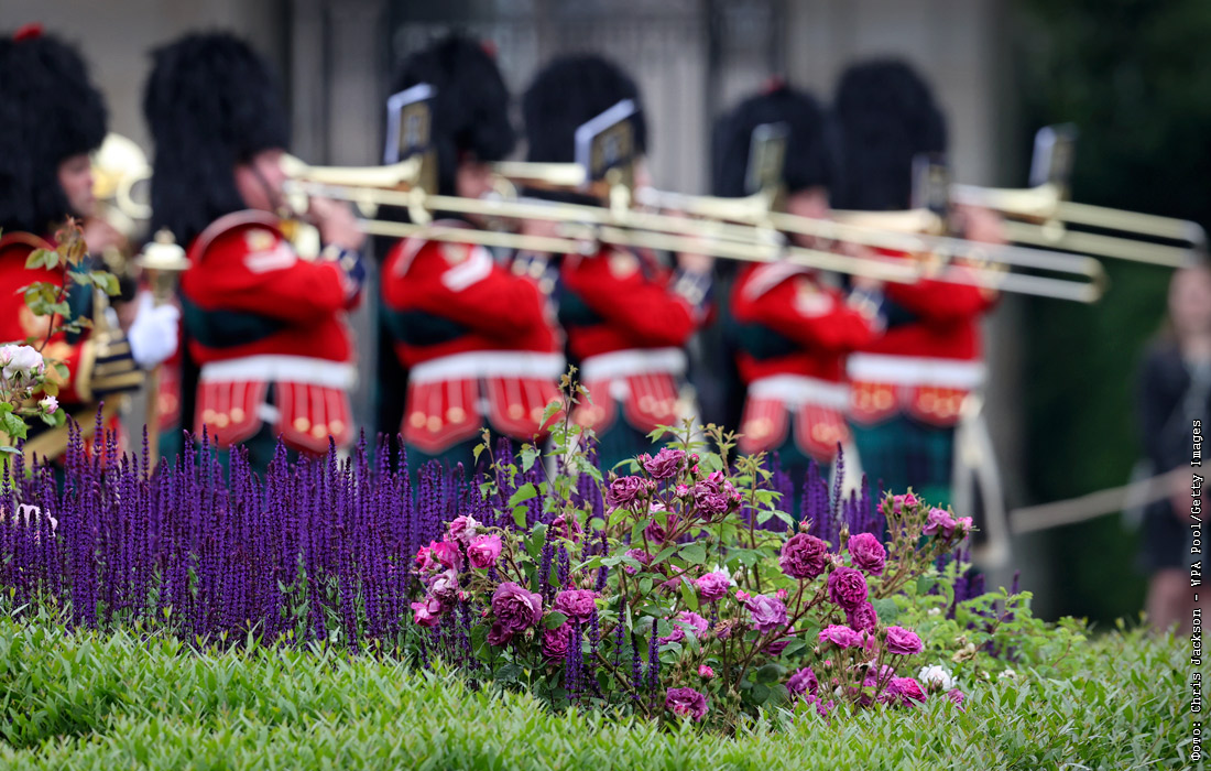 Оркестр Королевского полка Шотландии приветствует Елизавету II