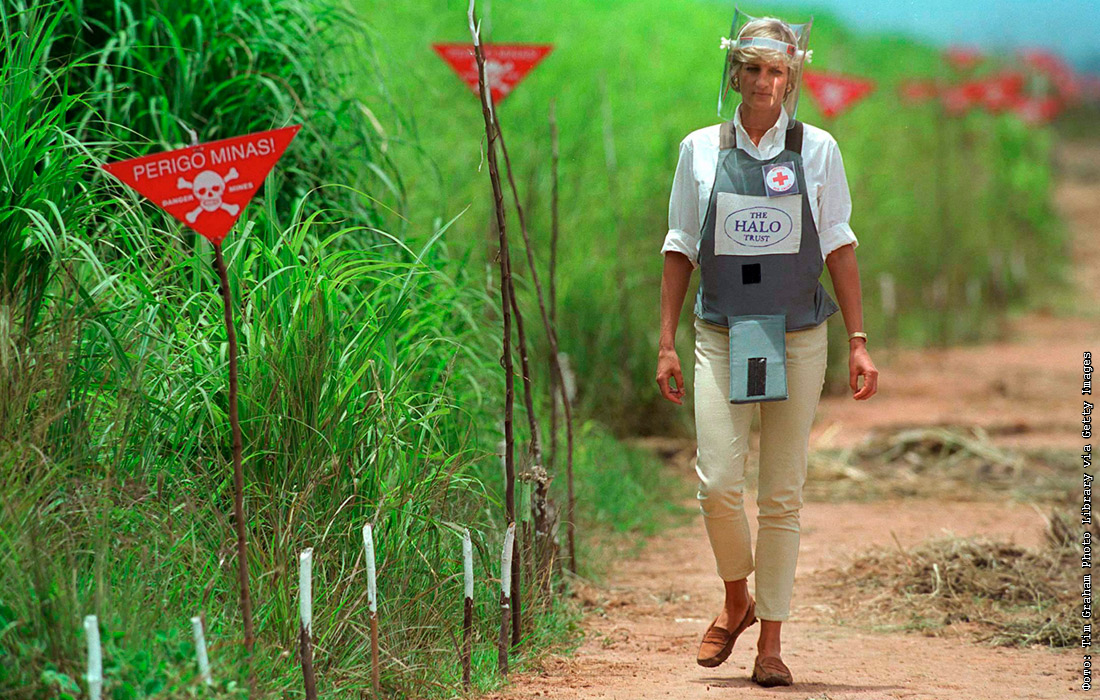 Диана посещает минное поле, очищаемое благотворительной организацией Halo в Уамбо. Ангола. Январь 1997 года.