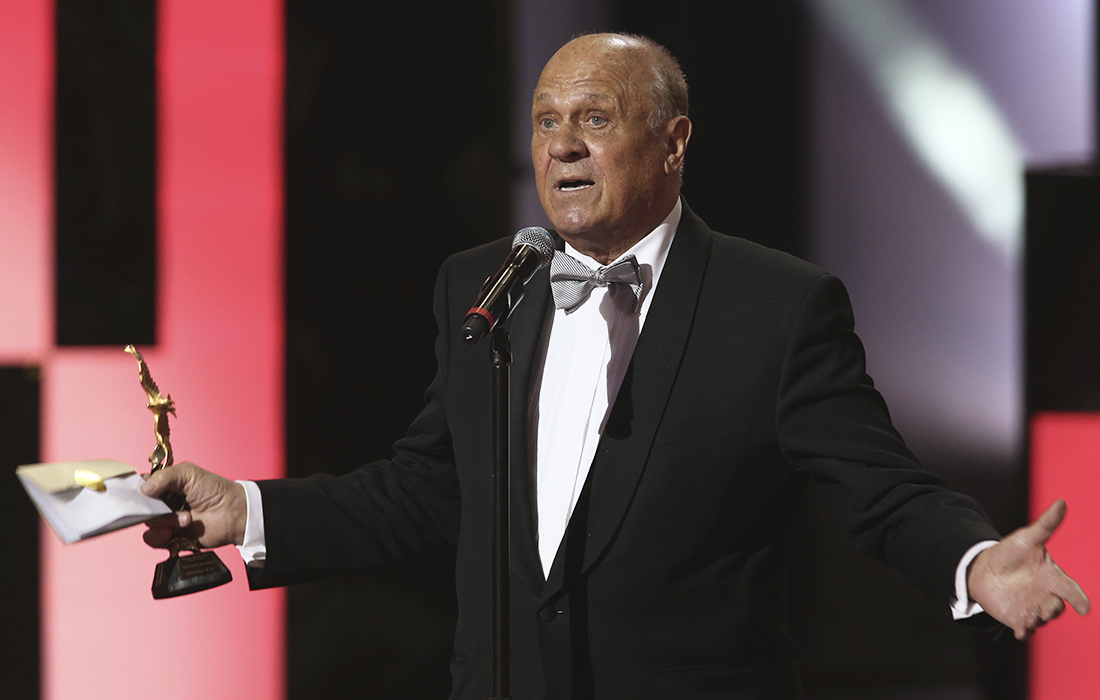 Владимир Меньшов получил премию "Золотой Орел" в номинации "Лучшая мужская роль второго плана" в фильме "Легенда №17" в Москве. 30 января 2014 года.