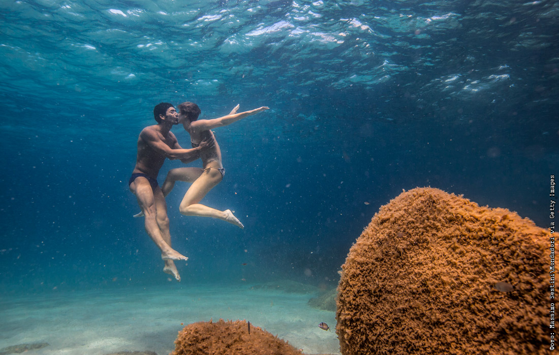 Итальянские пловцы Федерика Пеллегрини и Филиппо Маньини целуются под водой в Капо-Кода-Кавалло