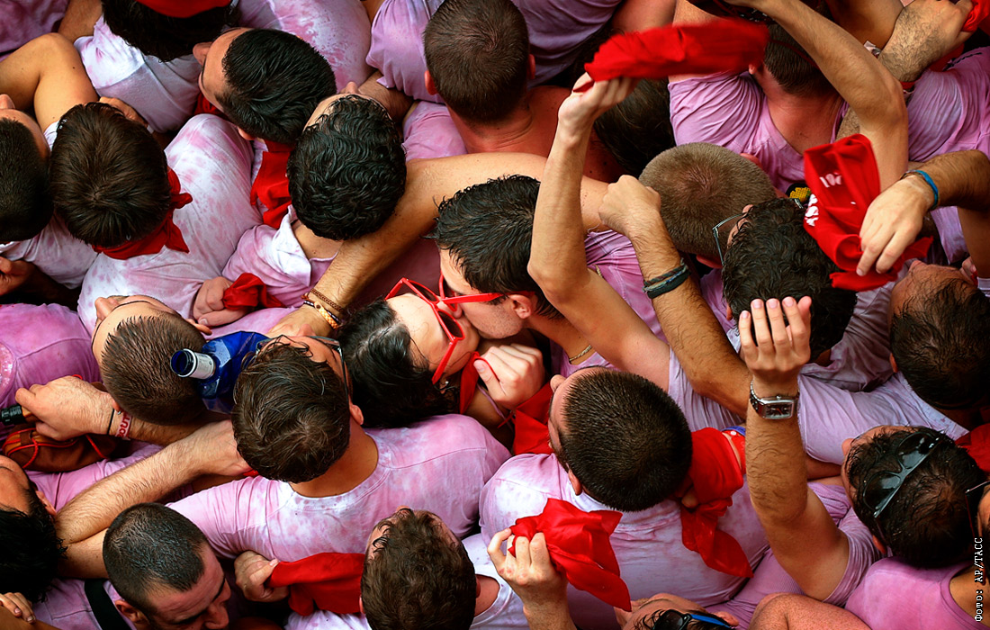 Поцелуй во время ежегодного фестиваля Сан-Фермин в испанской Памплоне