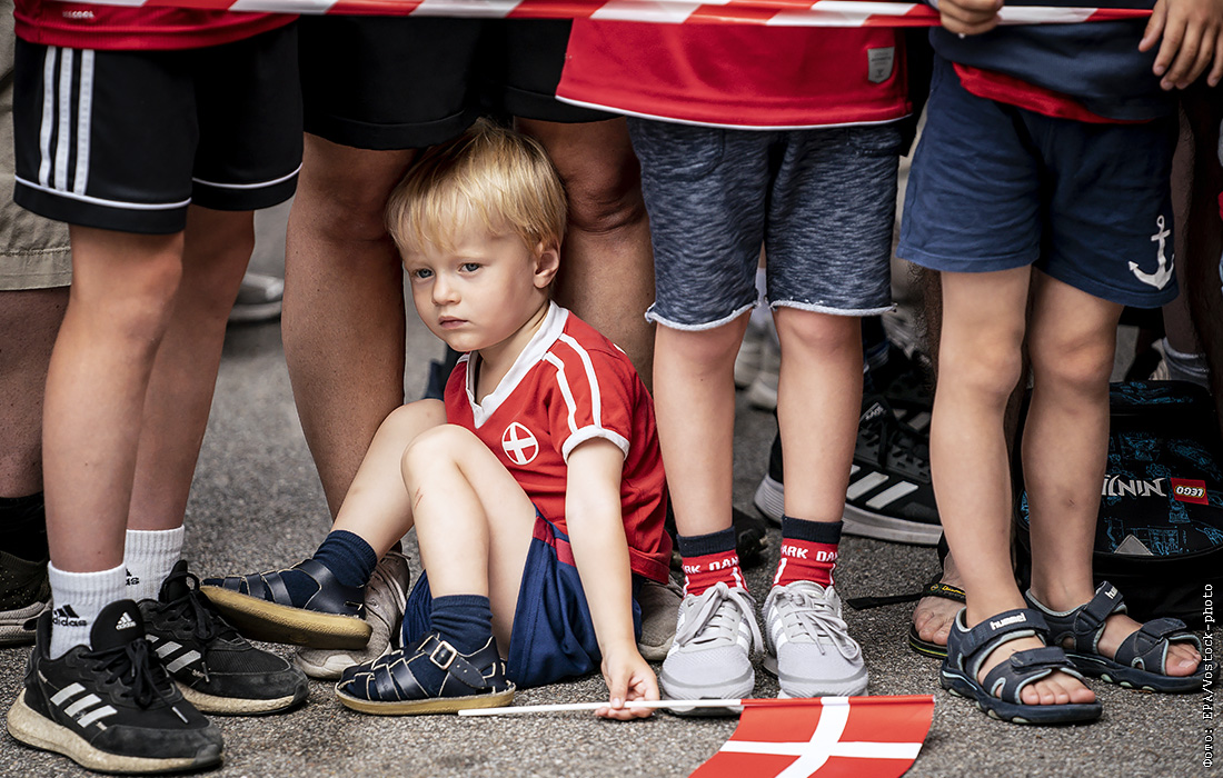 Юные болельщики провожают сборную Дании по футболу, которая отправляется в Лондон на полуфинальный матч Евро-2020 против Англии