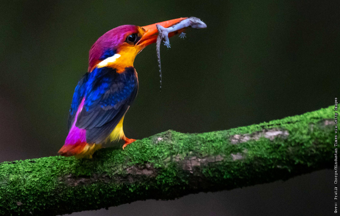 Рубиновый зимородок с добычей. Мумбаи, Индия.