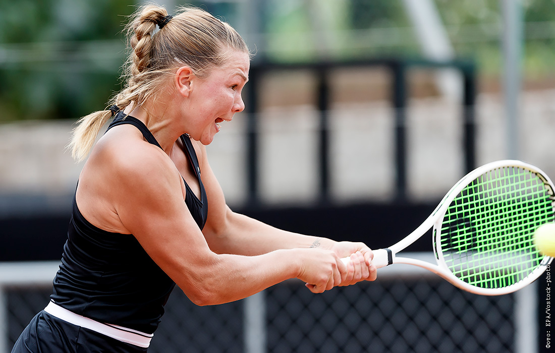 Российская теннисистка Марина Мельникова во время матча первого круга теннисного турнира Ladies Open Lausanne