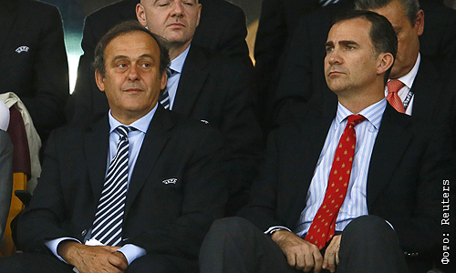 Президент УЕФА Мишель Платини и принц Фелипе на финальном матче Евро-2012.