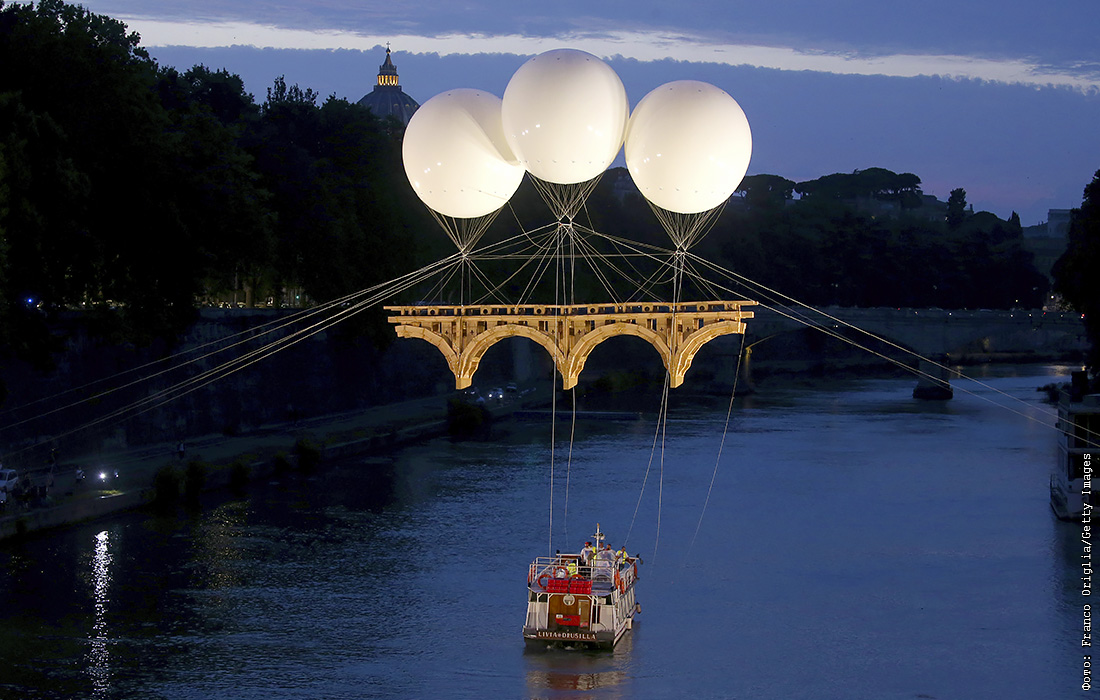 Инсталляция в Риме, которая напоминает о проекте Микеланджело по возведению моста между виллой Фарнезина и дворцом Фарнезе. План так и не был реализован.