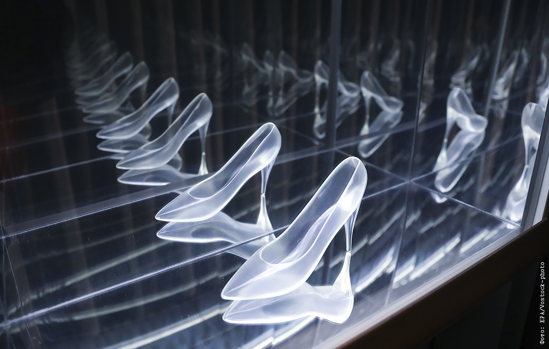 Туфли "Золушка" из стекла представлены на выставке в Музее дизайна в городе Холон, Израиль