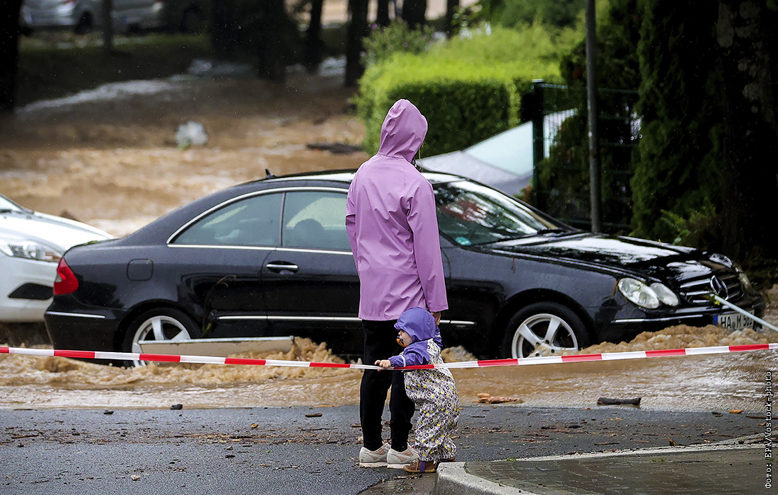 В немецком Хагене несколько автомобилей застряли в потоке воды, пожарным пришлось вызволять водителей