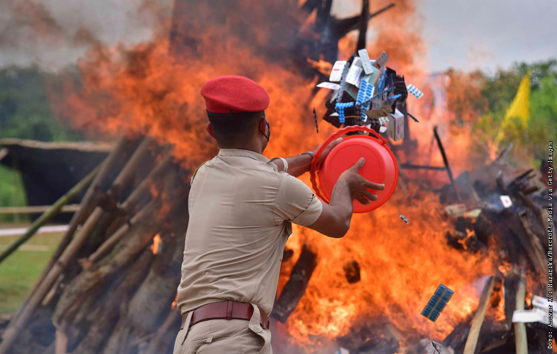 Полиция штата Асам на востоке Индии уничтожила более тонны изъятых наркотиков