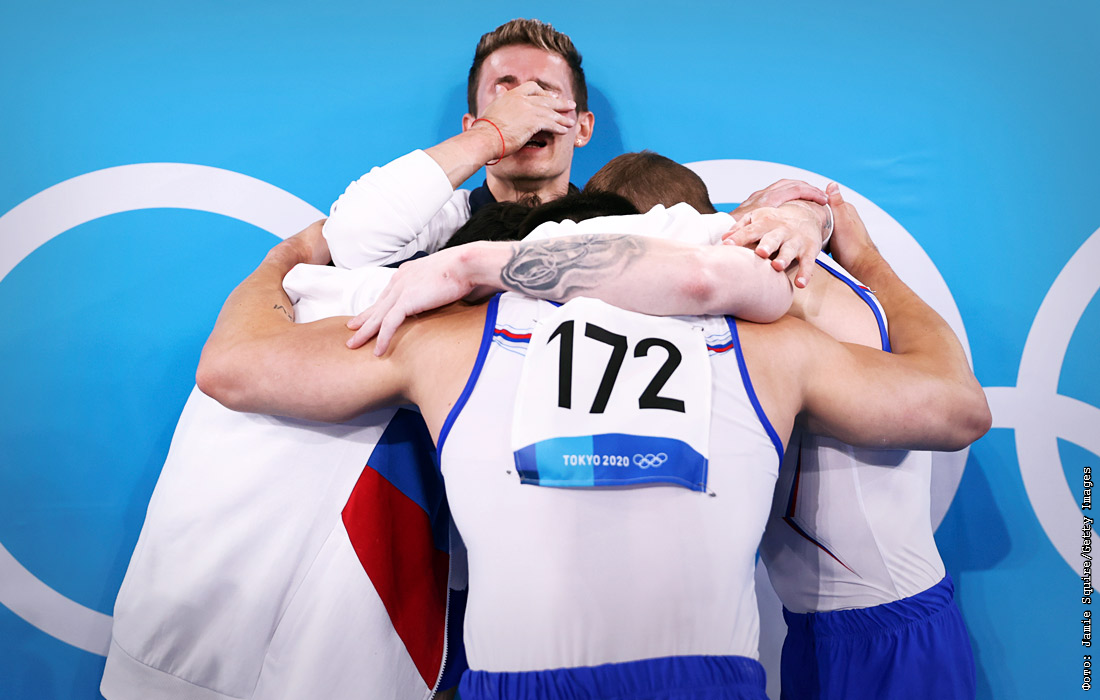 Мужская сборная России по спортивной гимнастике побеждает в командном турнире в многоборье