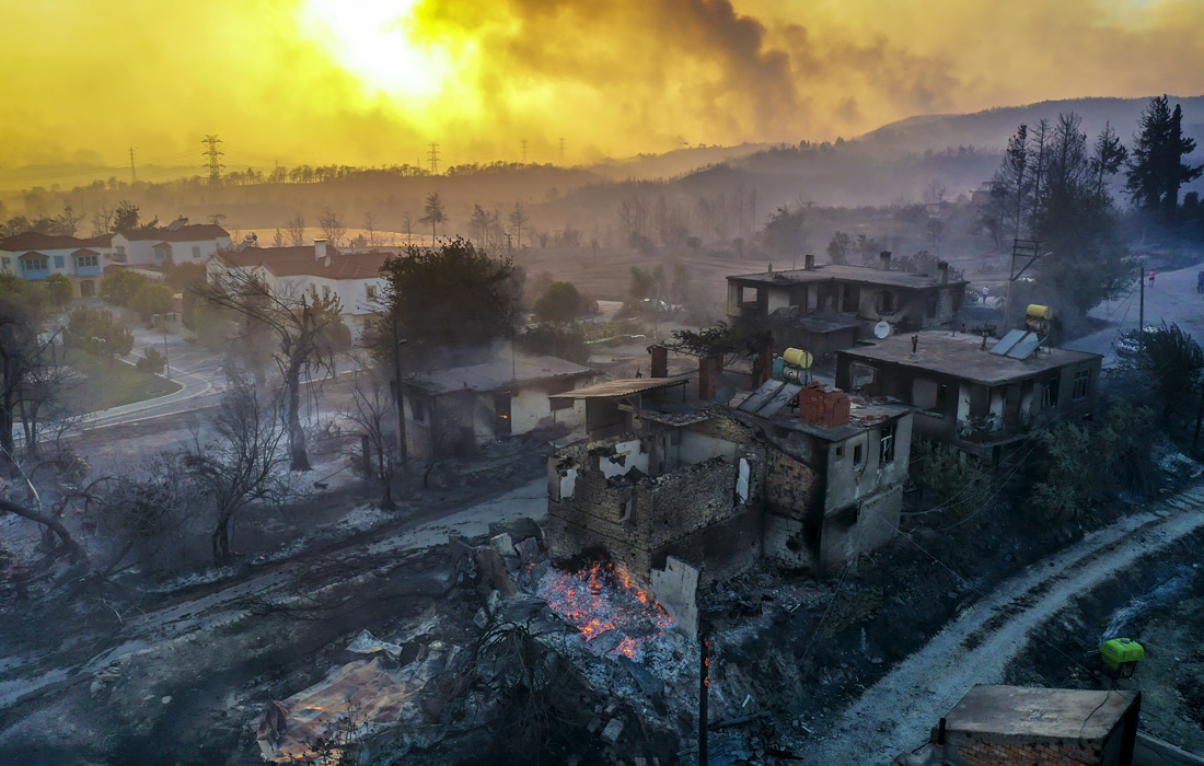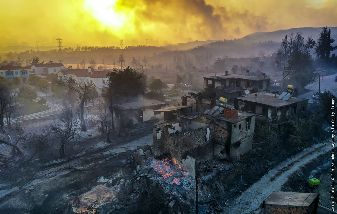 Из-за аномальной жары в Турции на западном и южном побережьях страны в течение последних двух дней продолжаются лесные пожары, сотни гектаров леса сгорели дотла. Пламя добралось до популярной туристической провинции Анталья. Спасатели эвакуировали жителей почти 20 населенных пунктов, один человек погиб. Более 60 человек госпитализированы с ожогами и проблемами с дыханием.